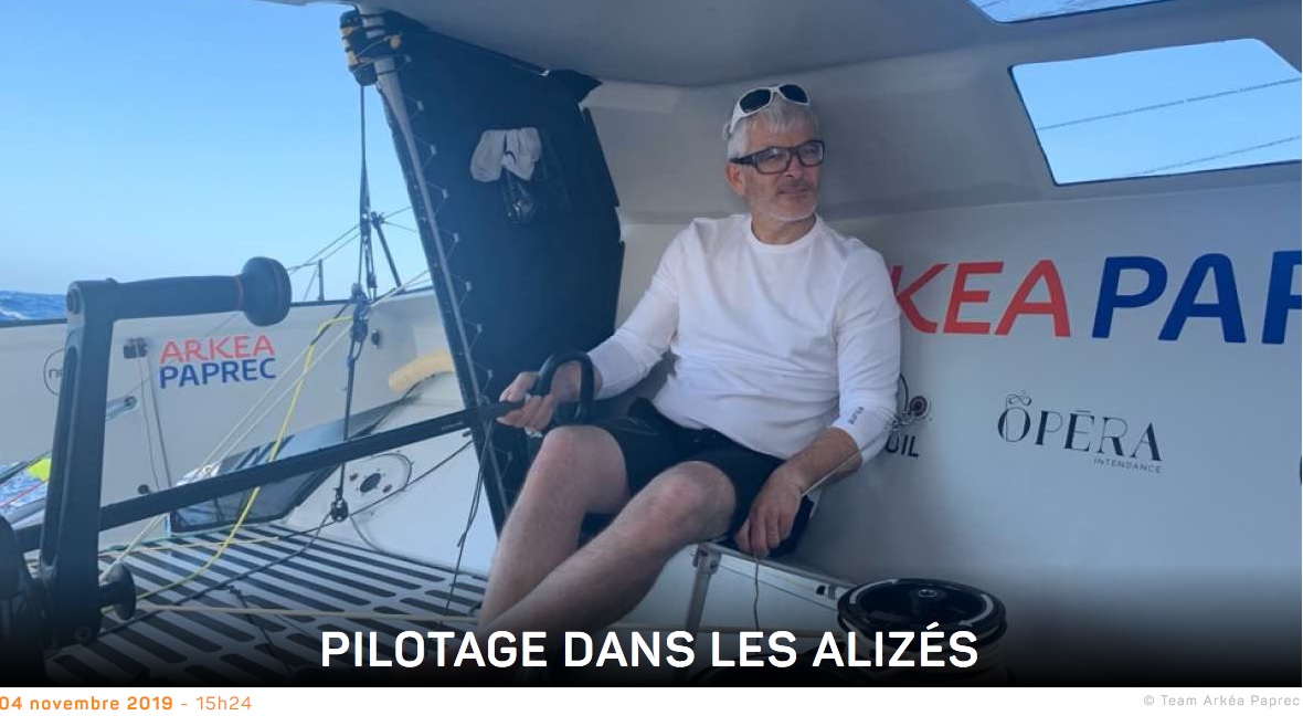 Les alizés, contrairement à l’image d’Epinal de vents constants et établis, ne sont pas de tout de repos ! Alors que nous appelions Sam Davies (IMOCA Initiatives-Cœur) ce midi pour la vacation, Sam et Paul ont subi un joli départ au tas ! Comprenez que le vent de nord-est est monté d’un coup en puissance, faisant sortir le bateau du cap auquel le pilote automatique devait obéir. C’est ce qu’on appelle dans le jargon : une sortie de piste…