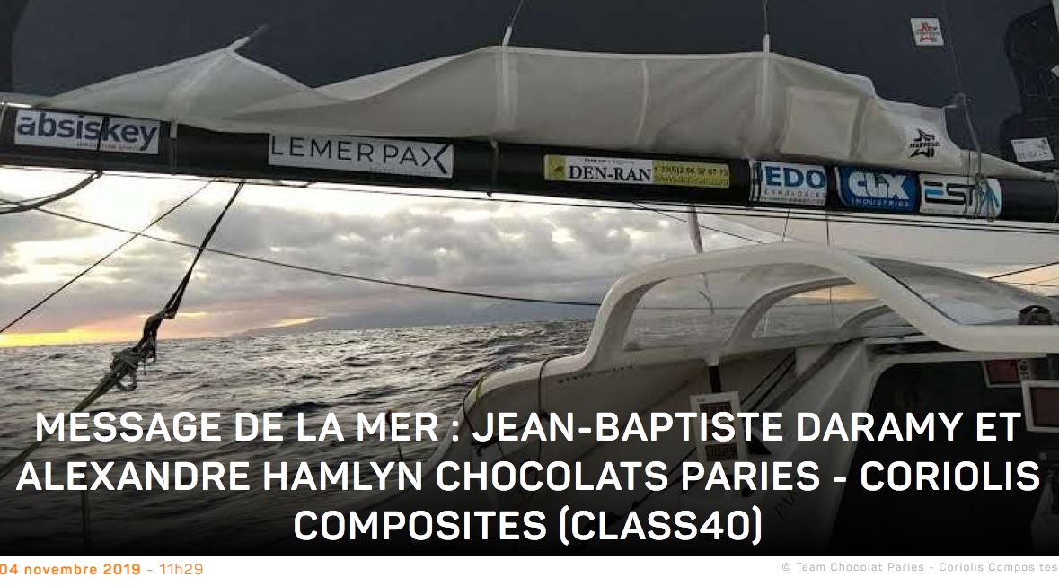 Transat Jacques VABRE 2019 : 4 novembre 2019 9ème Jour de course @TransatJV_fr #TransatJV